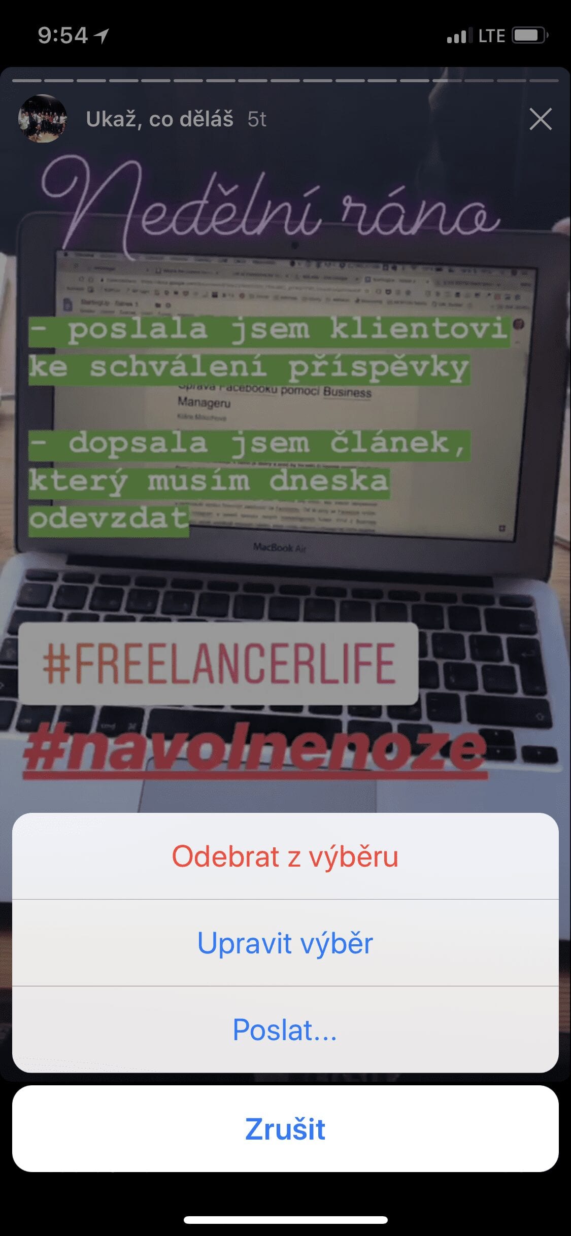 Pokud chcete pro své výběry také takovéhle pěkné ikonky, můžete to udělat poměrně snadno. Když výběr zveřejníte na svém profilu a v mobilní appce na něj klepnete, budete mít v pravém dolním rohu ikonku 3 teček s textem Další…, kde najdete možnost Upravit výběr.