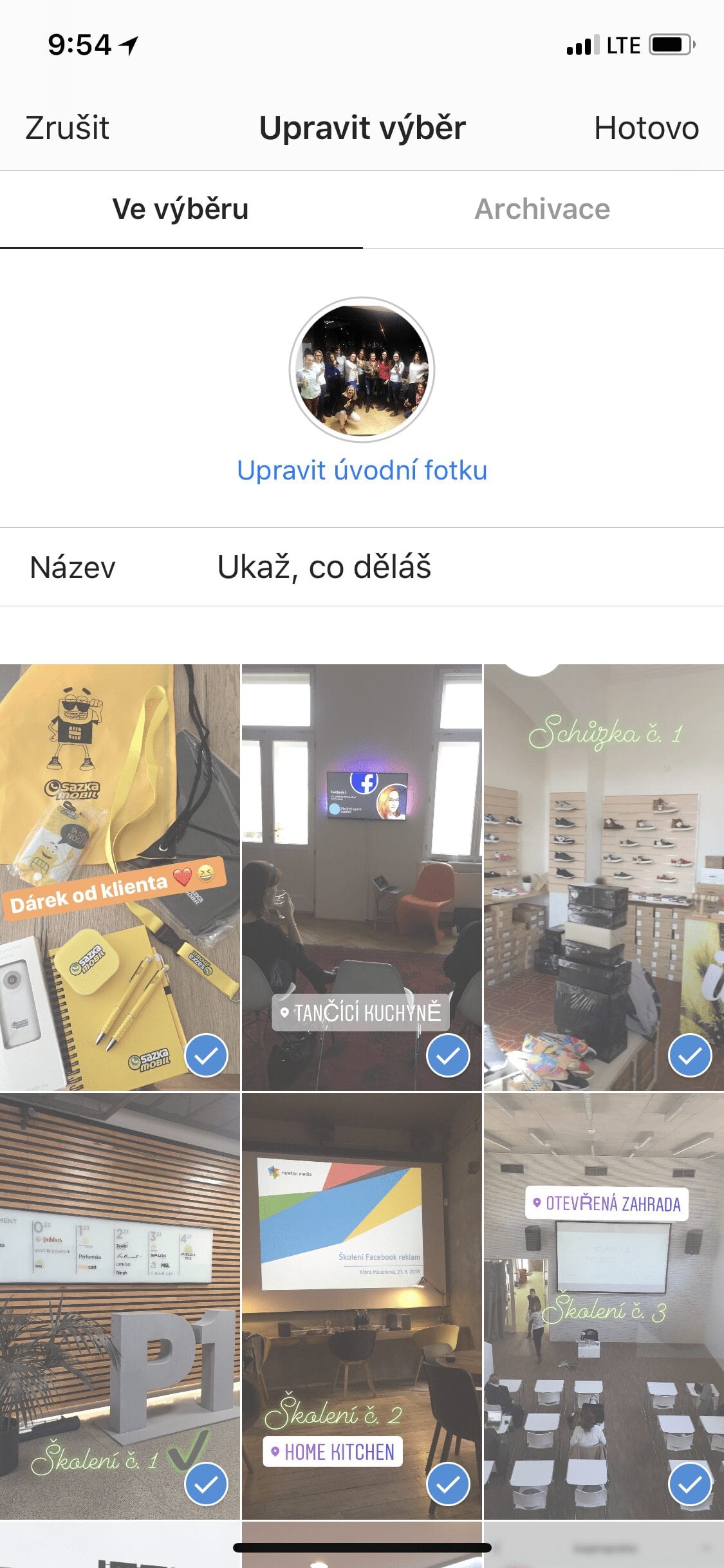 Takže musíte nejprve všechny náhledové grafiky vytvořit, třeba v nějakém grafickém programu, nahrát je do Stories, umístit je do Výběru a poté si tu grafiku zde vybrat. Můžete ji i libovolně zvětšit a oříznout, takže při tvorbě grafiky nemusíte řešit žádné rozměry a uméstění na střed a podobně, protože to pak můžete přímo při výběru upravit.