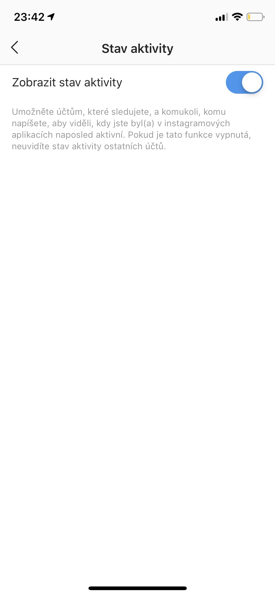 Když na ni klepnete, šoupátkem můžete přepnout, jestli chcete, aby se u vás zobrazovalo, kdy naposledy jste byli aktivní, nebo ne.