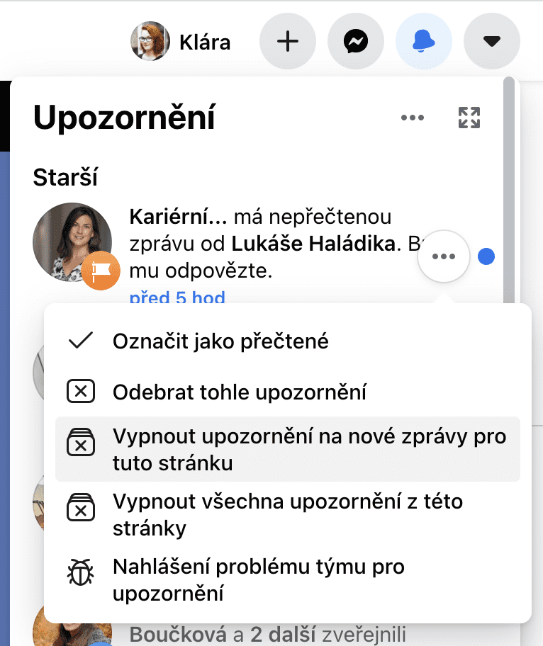 Pokud se pak chcete na Facebooku zbavit notifikací z některých stránek, stačí, když klepnete na ikonku tří teček vedle dané notifikace: