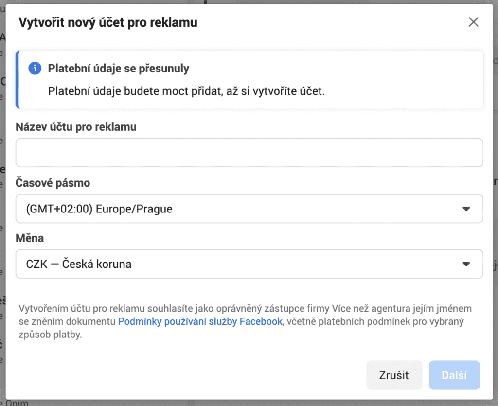 Zakládáte nový reklamní účet? Velmi důkladně si čtěte instrukce a dávejte pozor, co nastavujete. Dbejte na to, abyste správně zvolili časové pásmo a měnu. Po založení účtu se totiž (pravděpodobně z důvodu reportování dat) časové pásmo ani měna již nedá změnit, museli byste účet deaktivovat a založit jiný.